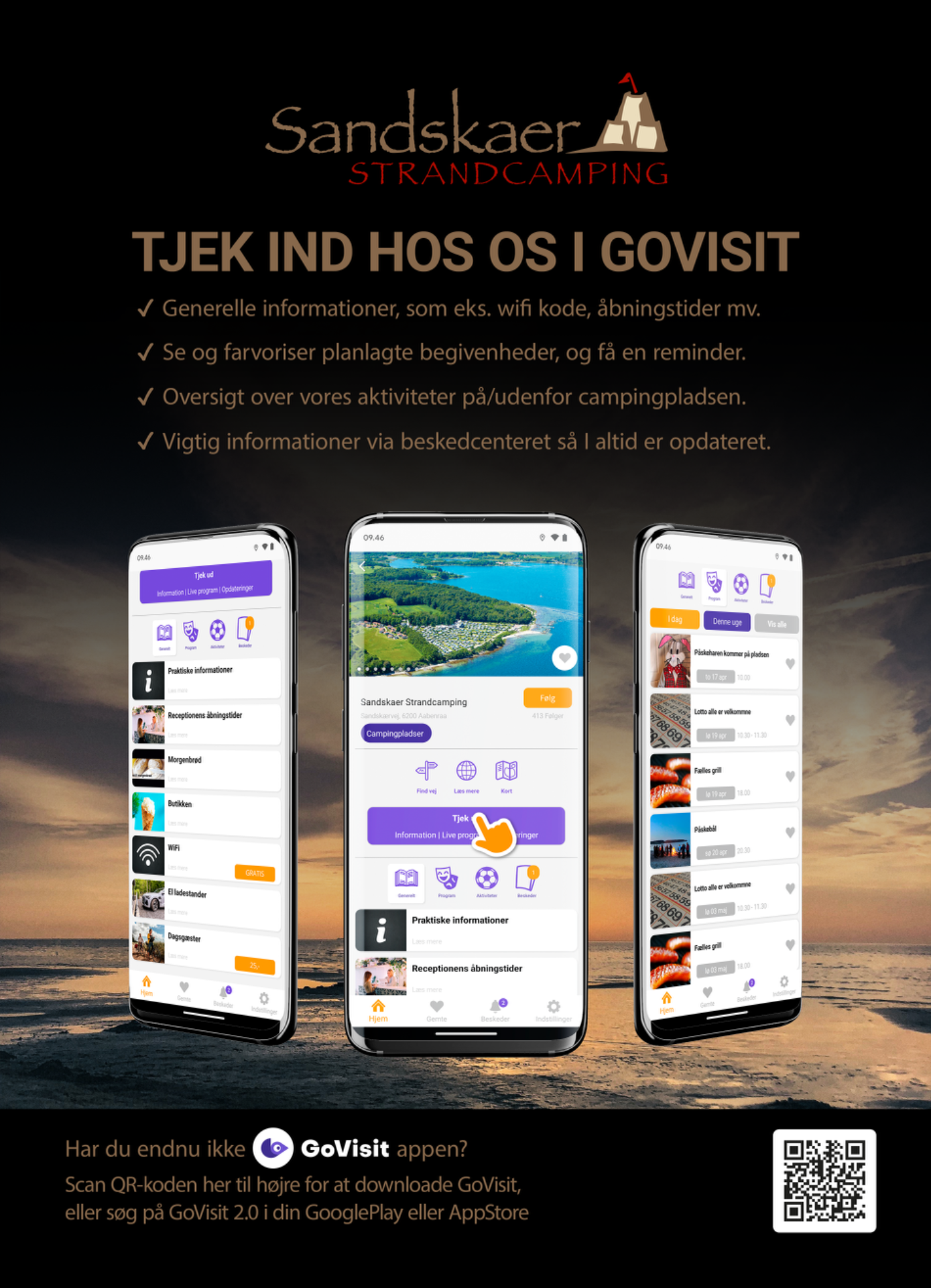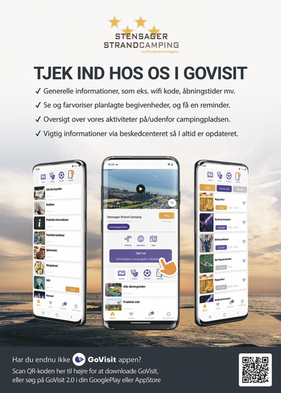 Min ide var at skabe en digital platform som Campingpladsen selv kunne administrere, og det blev starten på GoVisit appen, som idag bruges af campingpladser, turistselskaber med mere. Sidenhen er systemet vokset, og App-ideen er vokset til et komplet system med App, Wep-Apps, Kalenderløsninger, Infoskærme, Billetsystem og meget mere. Du kan se meget mere på www.govisit.dk